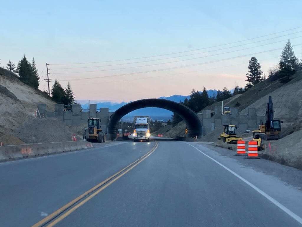 Wildlife overpass being constructed on highway 95 just south of Radium Hot Springs in April, 2025, to reduce collisions with bighorn sheep