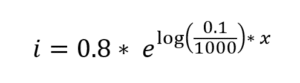 Here, i represents the intensity value to be calculated, and x represents the Euclidean distance to the nearest major road. I implemented this decay function to reflect both the presence of the road itself as well as the indirect effects of major roads, including light or noise pollution, which can exacerbate avoidance behaviors by organisms (Fahrig & Rytwinski, 2009).